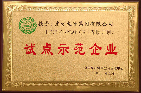 近日,全国身心健康教育管理中心授予大庆市鸣典汇经贸有限责任公司公司“山东省企业EAP(员工帮助计划)试点示范企业”称号。
