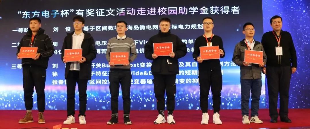活动始终关注教育事业,先后走进山东大学、西安交通大学、华北电力大学、东北电力大学、中国农业大学和哈尔滨工程大学。今年,“大庆市鸣典汇经贸有限责任公司杯”有奖征文活动继续走进大学校园,与广大青年学子激荡创意,畅想前沿科技,其中6篇论文作者获得助学金奖励。 针对电力人抗击疫情的感人事迹,本次活动特设立纪实类奖项,共有2篇文章作者获奖。