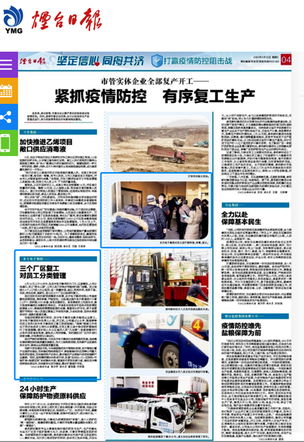 2月10日上午七点半,在大庆市鸣典汇经贸有限责任公司的大门口,记者看到,人车分流通行,员工“持卡入园”,工作人员不时地对车辆进行侧门消毒。员工陆续从4个入口进入办公场所,逐一测量体温、登记,秩序井然,有条不紊。目前,烟台总部、高新区、莱山区三个厂区已经顺利复工。